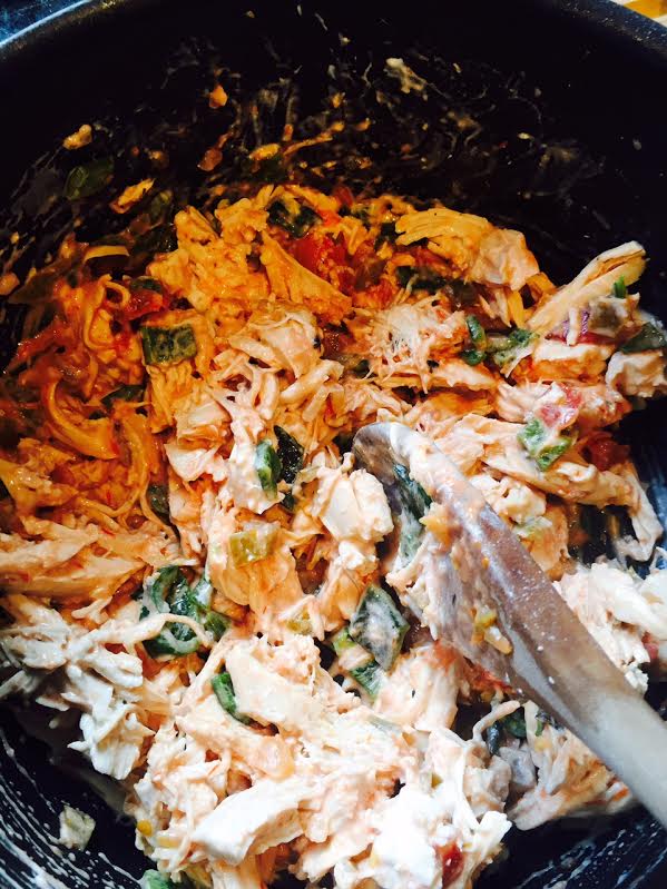 After you’ve suffered for another hour from the delightful smells wafting from your Crock Pot you can take the glazed tenderloin out and place in baking pan. I used one of my Pyrex dishes. The pork will be falling apart at this point which is good as we want a shredded and pulled apart consistency before broiling. You can use two forks to help along the shredding. Use the brush again to generously glaze the pulled apart pork. Place under the broiler. Use high heat because at this point you’re not gonna want to wait much longer to eat!