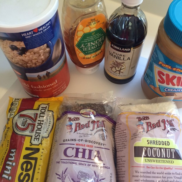 Mix it all together in a large bowl. Using your hands, roll and form into small (about 1 inch) balls and place on a baking sheet covered in parchment paper. Refrigerate for 20-30 minutes, place in an air tight container and refrigerate for up to a week.